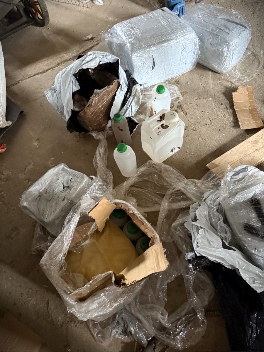 Obok kanistrów ujawniono także niemal 10 kilogramów jasnożółtego skrystalizowanego proszku. Jego dokładny skład nie został jeszcze ustalony, a próbki trafiły do dalszych badań laboratoryjnych.