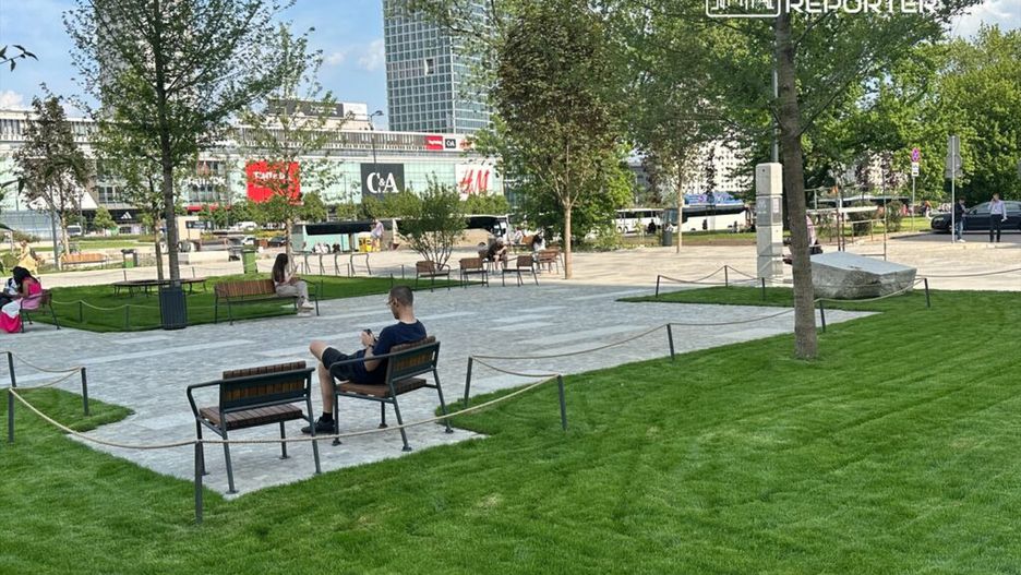 Choć plac dopiero co otwarto, jeszcze przed zmierzchem kawiarniane ogródki rozstawiły stoliki, a spacerowicze gęsto obsadzili ławy wokół sadzawki; widać, że długo wyczekiwane „zielone serce Warszawy” zaczęło interesować mieszkańców
