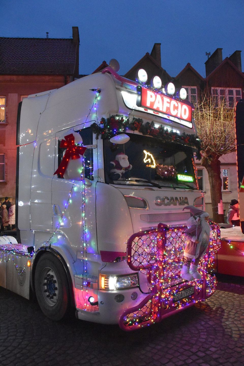 Co roku - i tym razem inaczej być nie mogło - uczestnikom biegu towarzyszyli kierowcy ciągników siodłowych jako Konwój św. Mikołaja. Jak zwykle, samochody cieszyły się wielkim zainteresowaniem. Mieszkańcy i goście miasteczka, których było kilkuset, chętnie fotografowali się przy pojazdach często pięknie ozdobionych świątecznymi motywami. Furorę w tym roku zrobił Grinch - i to niejeden.