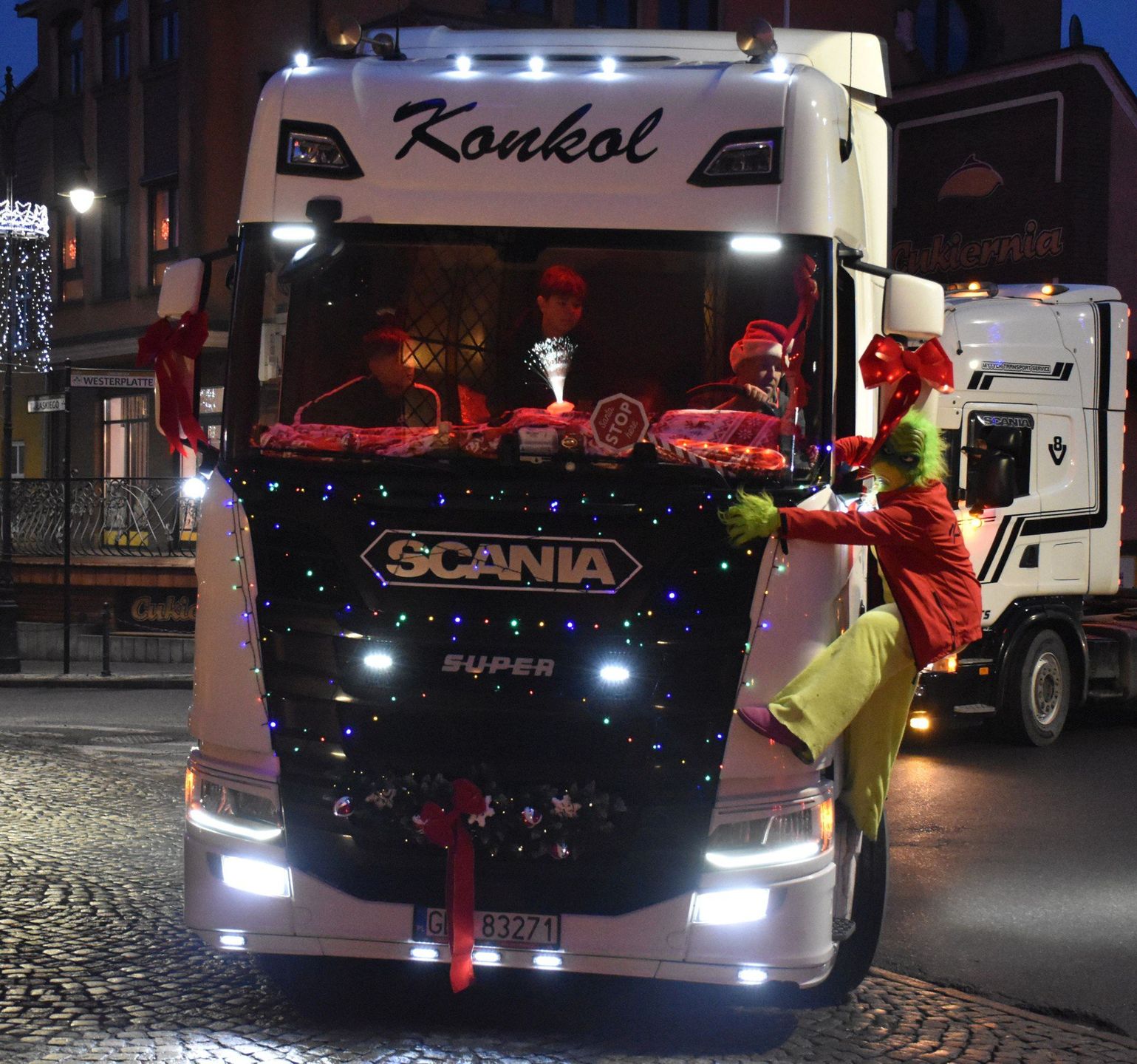 Konwój św. Mikołaja znów odbył się w Nowym Stawie. Kierowcy ciągników siodłowych od kilku lat towarzyszą uczestnikom Biegu św. Mikołaja. Jak zwykle, samochody cieszyły się wielkim zainteresowaniem. Mieszkańcy i goście miasteczka, których było kilkuset, chętnie fotografowali się przy pojazdach często pięknie ozdobionych świątecznymi motywami. Furorę w tym roku zrobił Grinch - i to niejeden.
