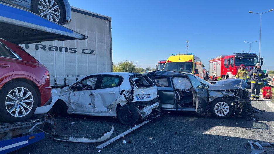 Kierujący samochodem ciężarowy uderzył w tył Skody, która wpadł na Peugeota. Samochody jeszcze uderzyły w następną ciężarówkę. W wypadku zginęły dwie osoby, a cztery zostały ranne. Ofiary śmiertelne są z jednej osobówki.