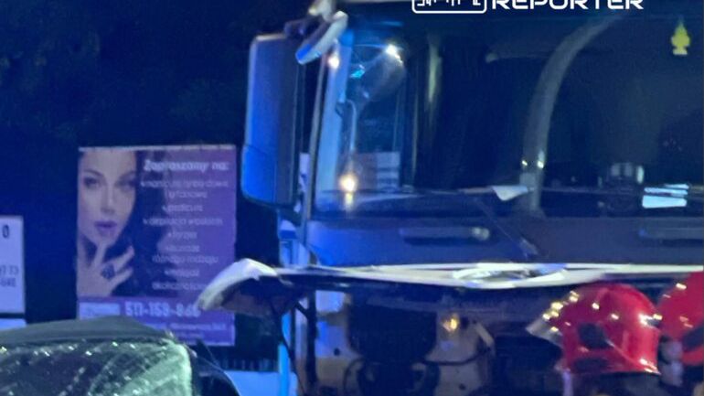Piaseczno: Nocne zderzenie samochodu osobowego z ciężarówką. Kierująca była zakleszczona w pojeździe