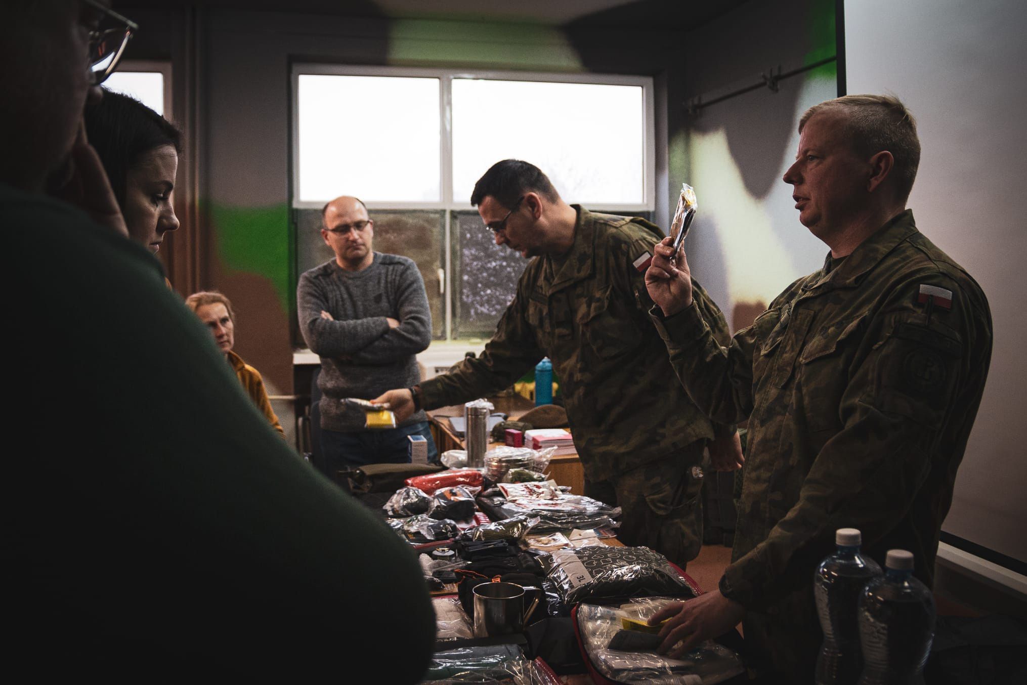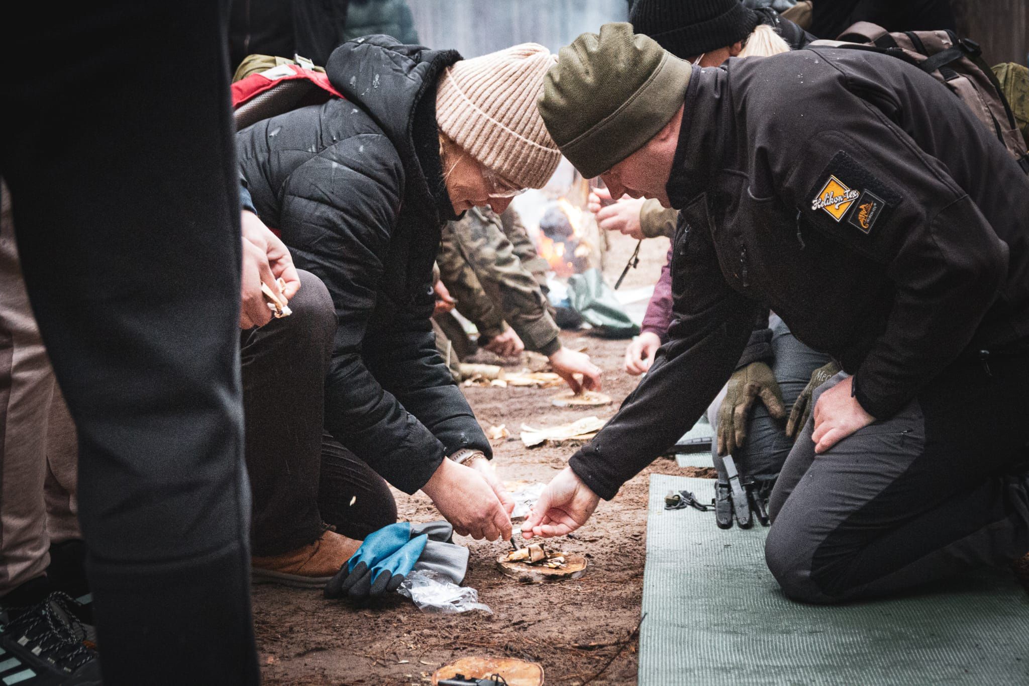 Druga część zajęć skupiła się na podstawach survivalu. Instruktorzy, w tym dowódca 122. blp ppłk Jarosław Łojek, przekazywali wiedzę o tym, jak zachować się w terenie, przygotować prowizoryczne schronienie, uzdatnić wodę do picia, rozpalić ogień oraz posługiwać się mapą. Uczestnicy poznali także zasady przygotowań na wypadek kryzysów, od awarii energii po nagłe zdarzenia pogodowe.
