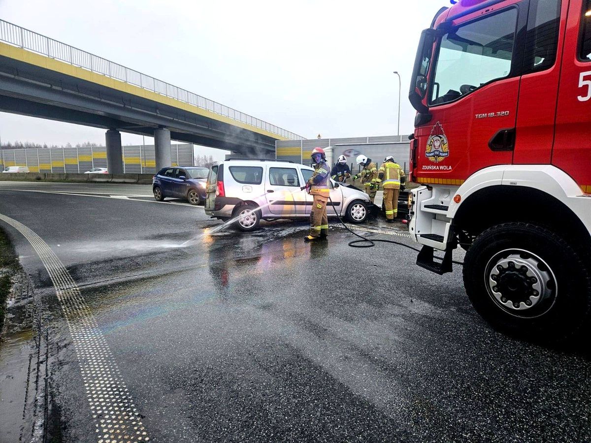 Policjanci wyciągnęli kierowcę z płonącego auta na S8. Zasnął za kierownicą w drodze do pracy