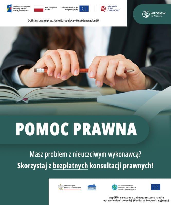 W odpowiedzi na te potrzeby, Wojewódzki Fundusz Ochrony Środowiska i Gospodarki Wodnej we Wrocławiu zorganizował cykl bezpłatnych konsultacji z doświadczonymi adwokatami. Specjaliści analizują dokumenty, udzielają porad, wskazują możliwe rozwiązania sporów i doradzają, jak postępować dalej.