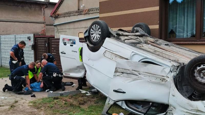 Po wypadku 43-latek próbował uciec pieszo, trzymając w dłoni zapalniczkę i grożąc policjantom pozbawieniem życia i zdrowia. Funkcjonariusze skutecznie obezwładnili mężczyznę i udzielili mu pomocy przedmedycznej. Następnie został przetransportowany przez zespół ratownictwa medycznego do szpitala, a po badaniach – osadzony w policyjnej izbie zatrzymań.