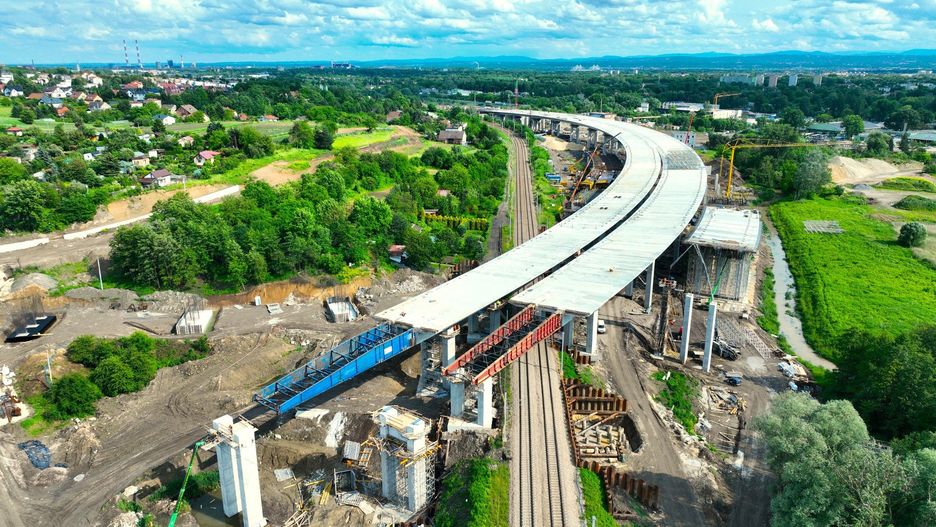 Potężna estakada zawisła nad torami kolejowymi. Połączy się z północną obwodnicą Krakowa