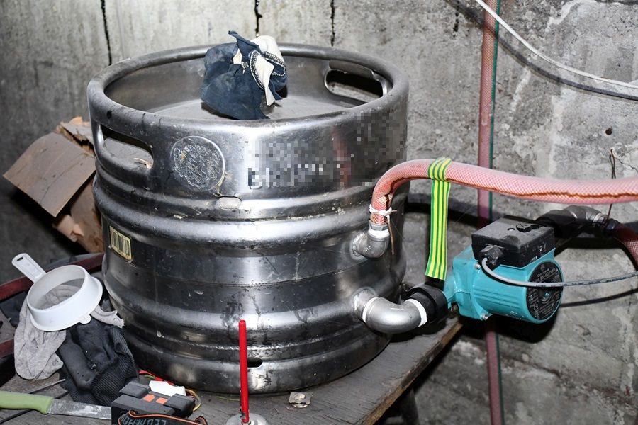 Podczas akcji gaśniczej strażacy i funkcjonariusze policji weszli do sąsiedniego pomieszczenia, gdzie natrafili na kompletną linię technologiczną służącą do produkcji alkoholu. Oprócz tego ujawnili beczki z nieznaną substancją oraz 32 butelki z alkoholem bez polskich znaków akcyzy. Cały sprzęt i zabezpieczony towar zostały przekazane do dalszych badań i analizy.