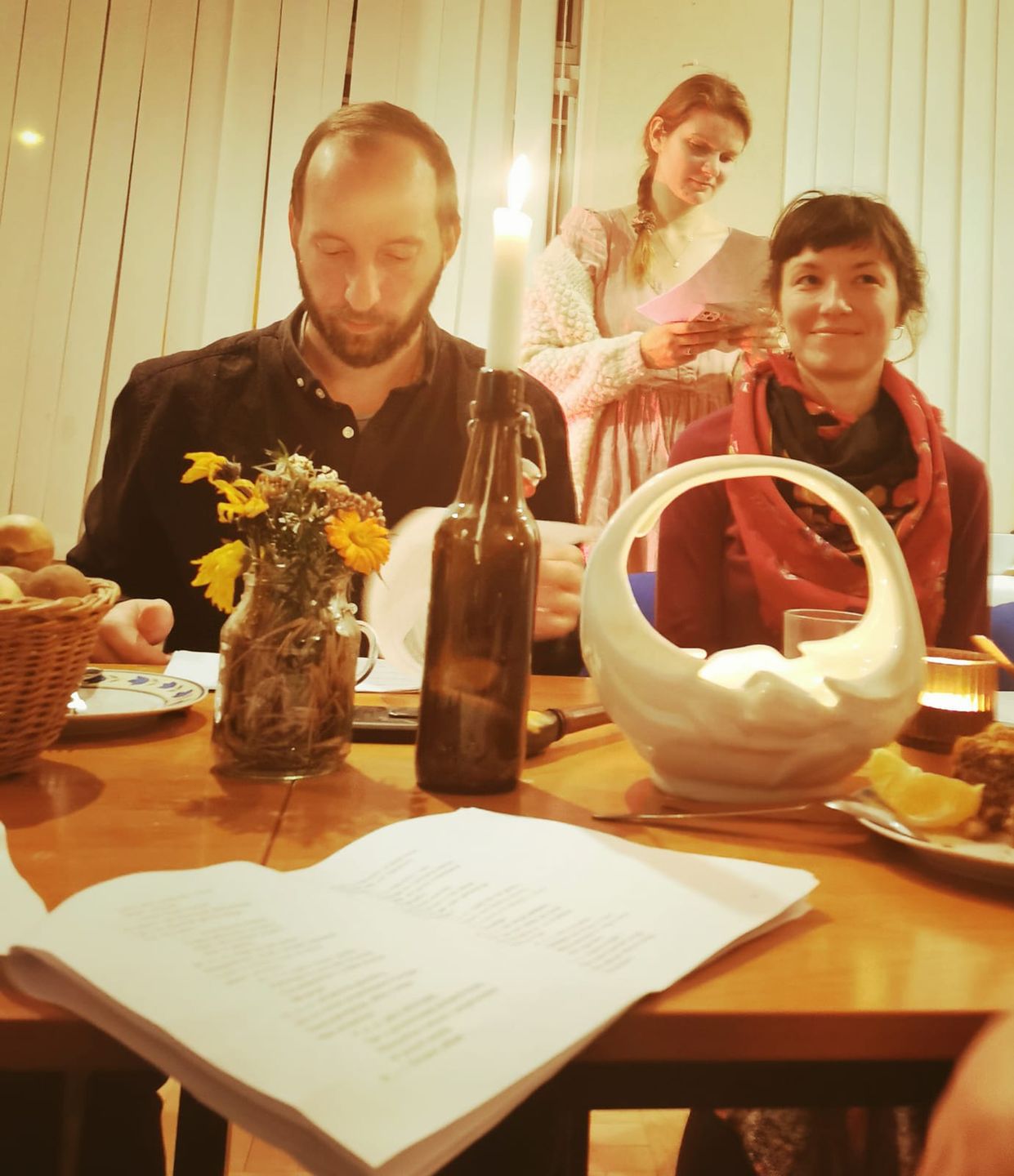 Uczestnicy zasiedli przy wspólnym stole, na którym, zgodnie z dawnym zwyczajem, każdy położył coś od siebie. Śpiewano pieśni pogrzebowe i zaduszne, grano na dawnych instrumentach, a muzyka do tańca przeplatała się z chwilami ciszy i refleksji.