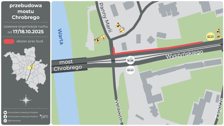 Poznańskie Inwestycje Miejskie apelują o zachowanie szczególnej ostrożności i śledzenie bieżących komunikatów dotyczących organizacji ruchu.
