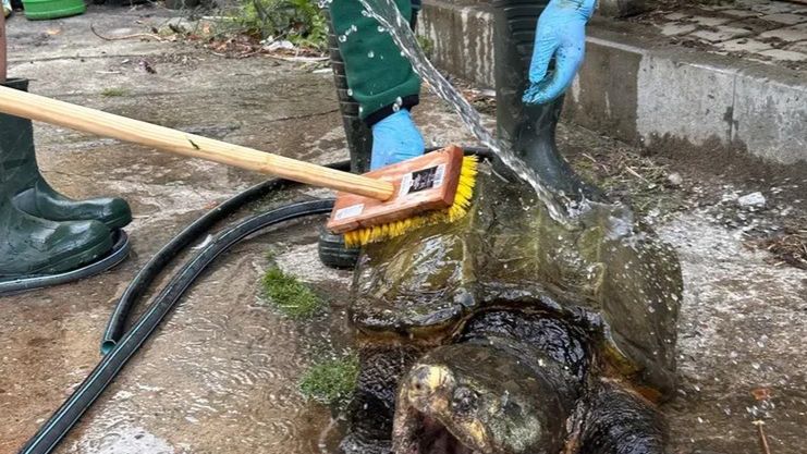 Zanim jednak przeniesiono je do zimowych rezydencji, przeprowadzono małe żółwie spa, choć nie wszyscy mieszkańcy wybiegów byli z niego zadowoleni. Żółwie zostały porządnie umyte, co niektórym z nich się nie spodobało – szczególnie sam proces, bo efekt wydaje się być dla nich satysfakcjonujący.