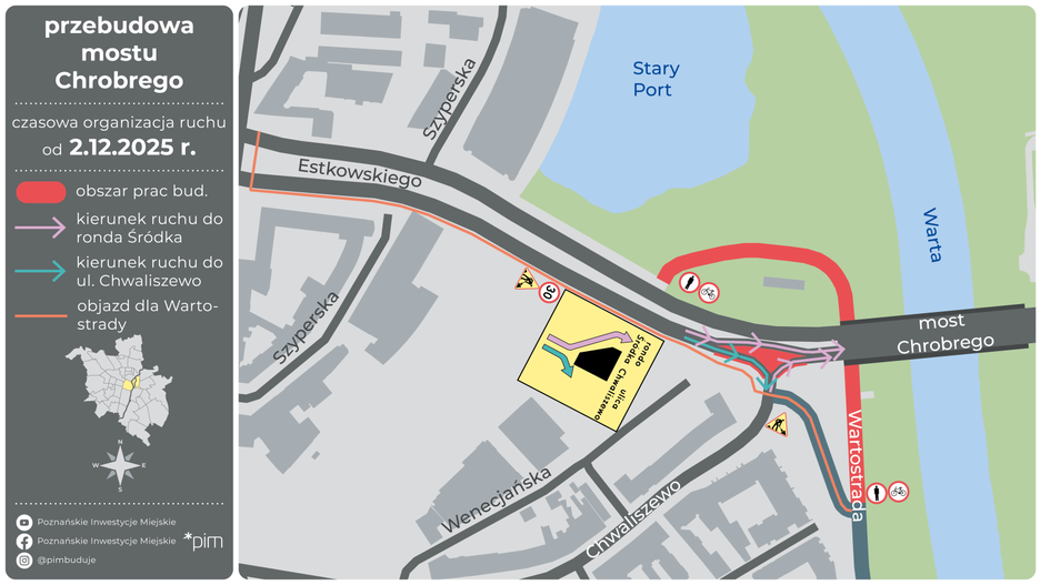 PIM zapowiada, że w kolejnej fazie konieczne będzie ograniczenie wyjazdu z ul. Chwaliszewo w stronę Śródki. Dokładny termin i szczegóły zostaną podane w osobnym komunikacie.