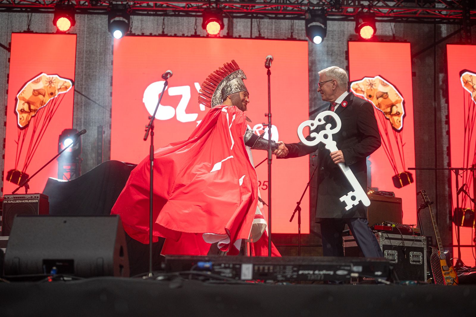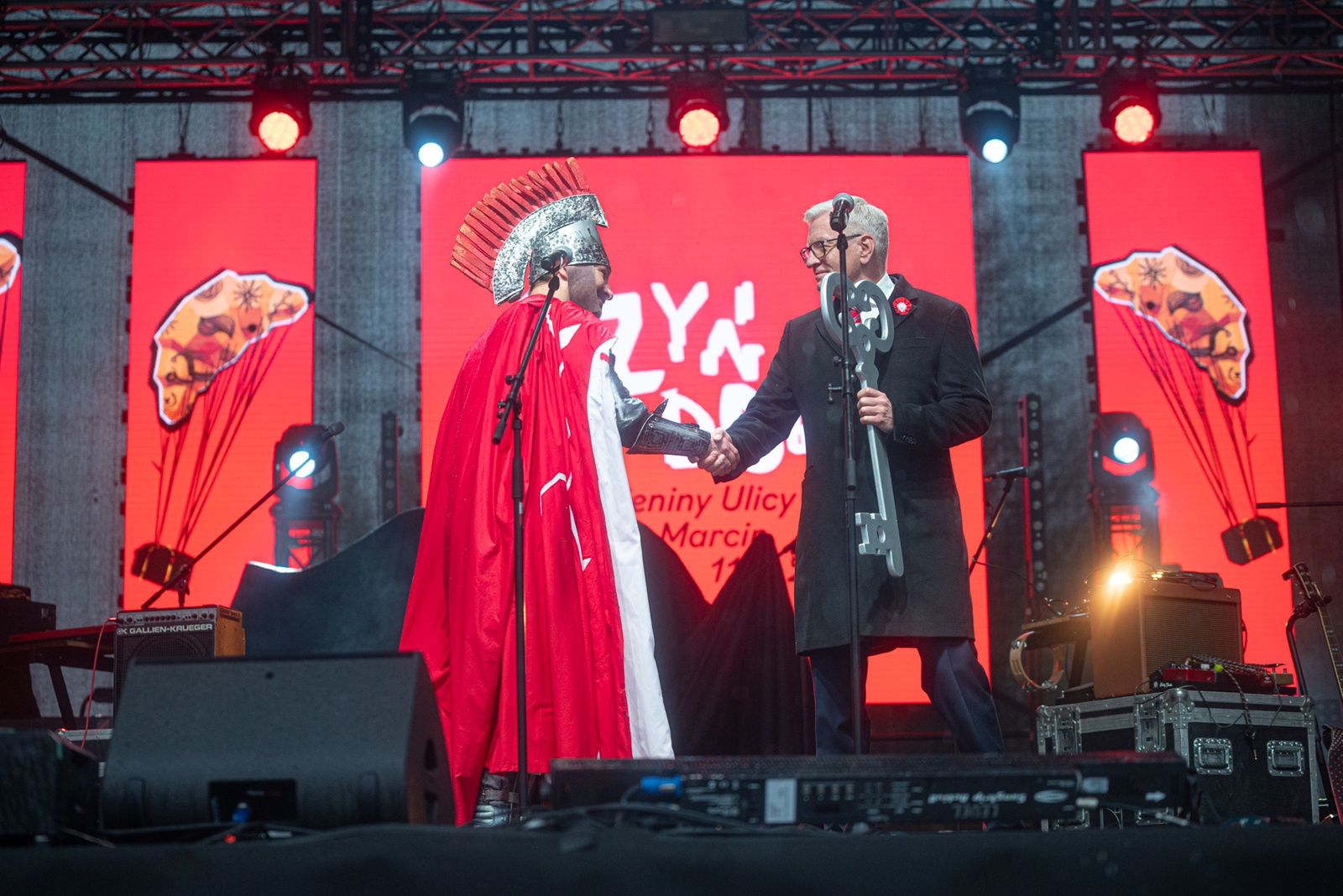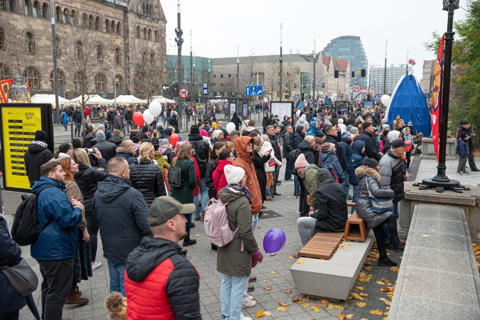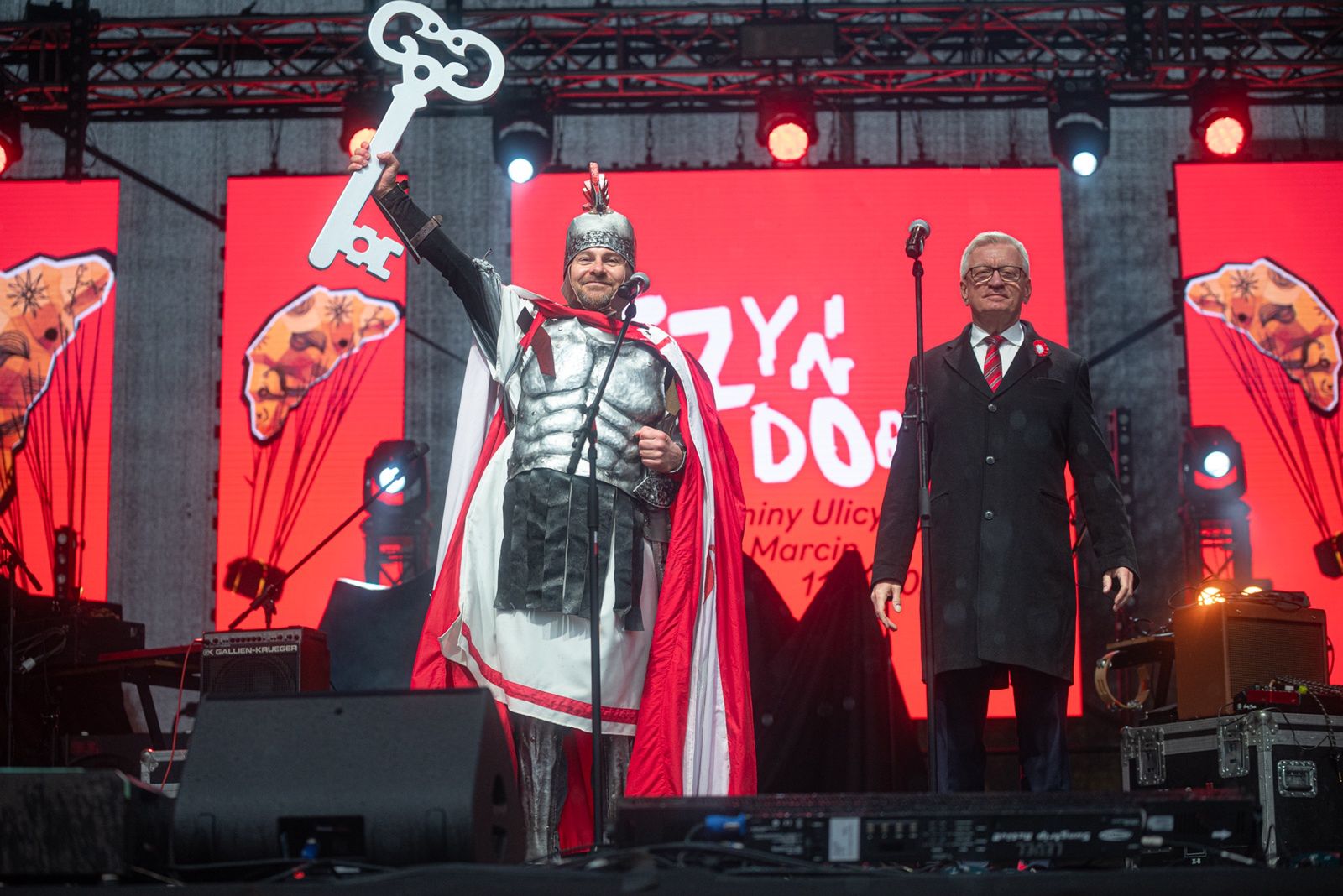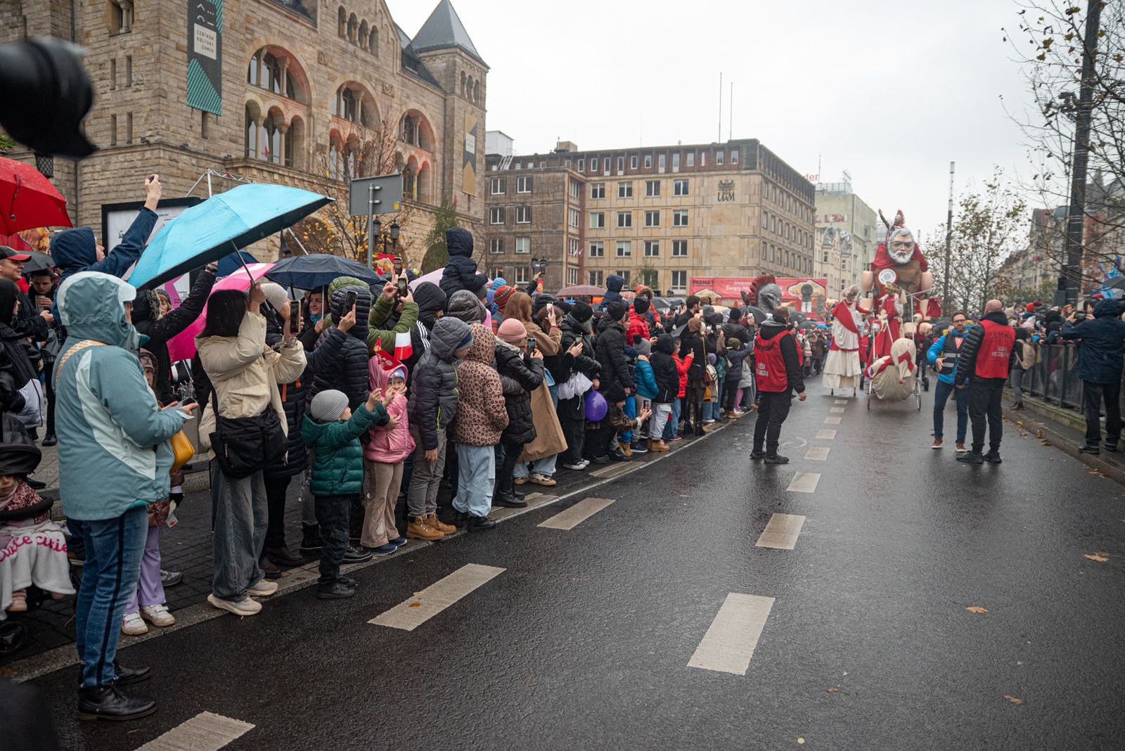 Choć w tym roku nie odbył się tradycyjny korowód ulicą Święty Marcin, atmosfera na placu była wyjątkowa. Tłumy poznaniaków, wyposażonych w parasole i biało-czerwone chorągiewki, szczelnie wypełniły przestrzeń wokół sceny ustawionej przy parku Adama Mickiewicza. To właśnie tam prezydent Poznania, w obecności setek widzów, przekazał Świętemu Marcinowi klucz do miasta.