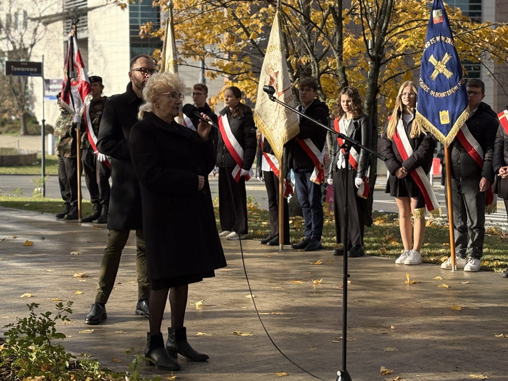 Jednym z najbardziej poruszających momentów uroczystości było wystąpienie Marty Przybyły, uczestniczki wydarzeń z 1939 roku i przedstawicielki Społecznego Komitetu Budowy Pomnika Wypędzonych. W swojej emocjonalnej relacji opowiedziała o wysiedleniu swojej rodziny z Poznania, pobycie w obozie na Głównej i późniejszych losach w okupowanej Polsce.