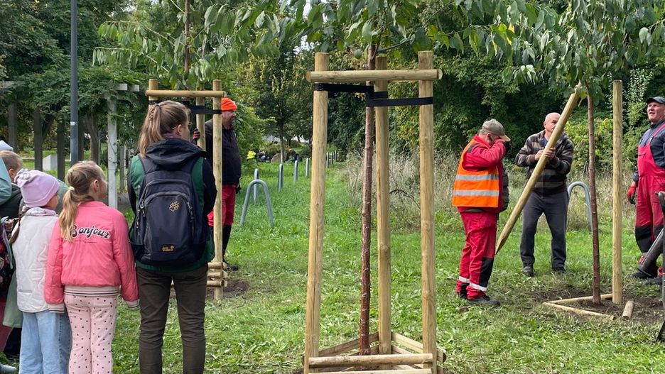 Poznań: Uczniowie posadzili czereśnię w Parku Heweliusza z okazji Dnia Drzewa