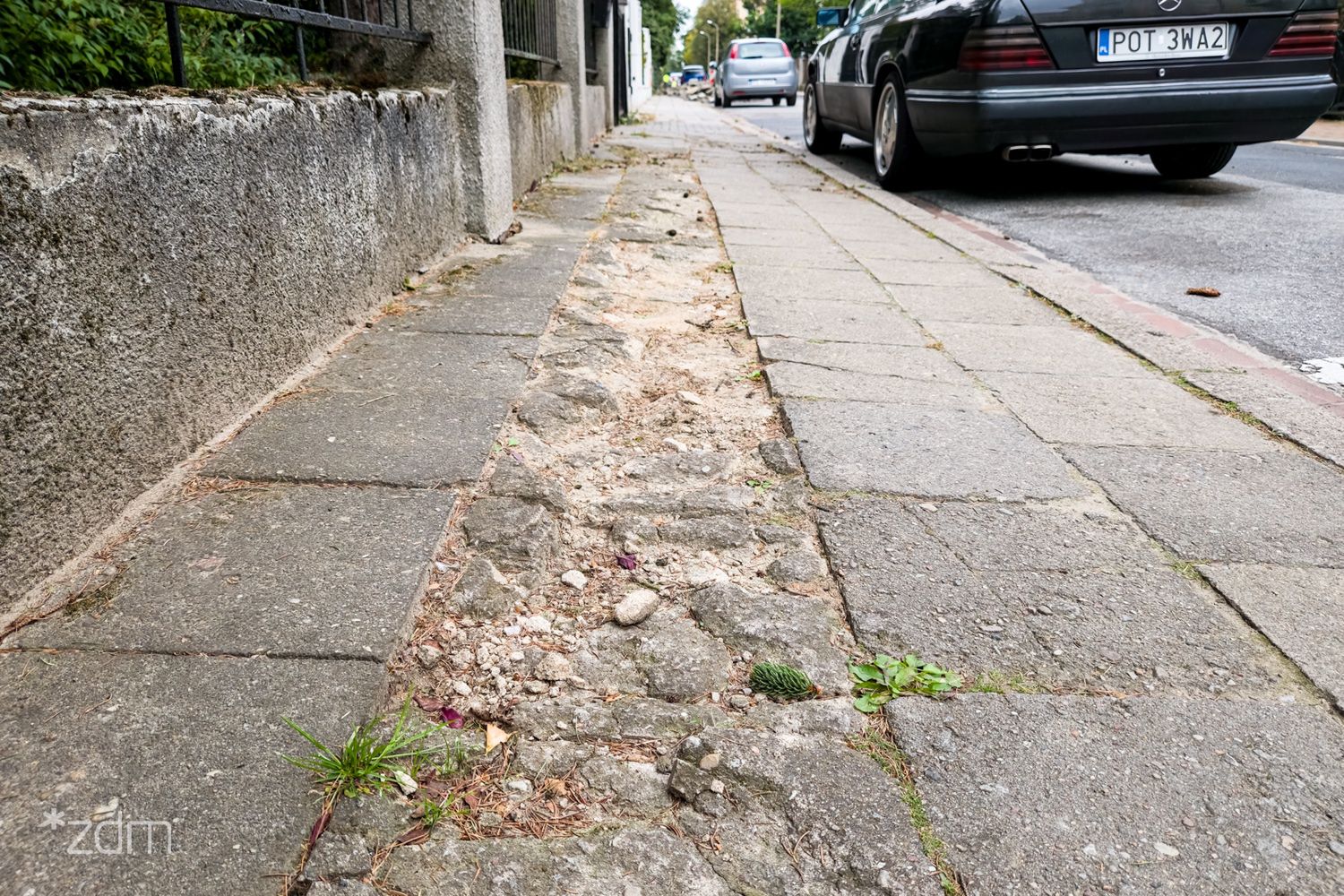 Poznań: Zniszczony chodnik znika z ul. Grodziskiej, ale prace potrwają kilka miesięcy