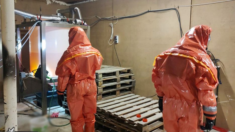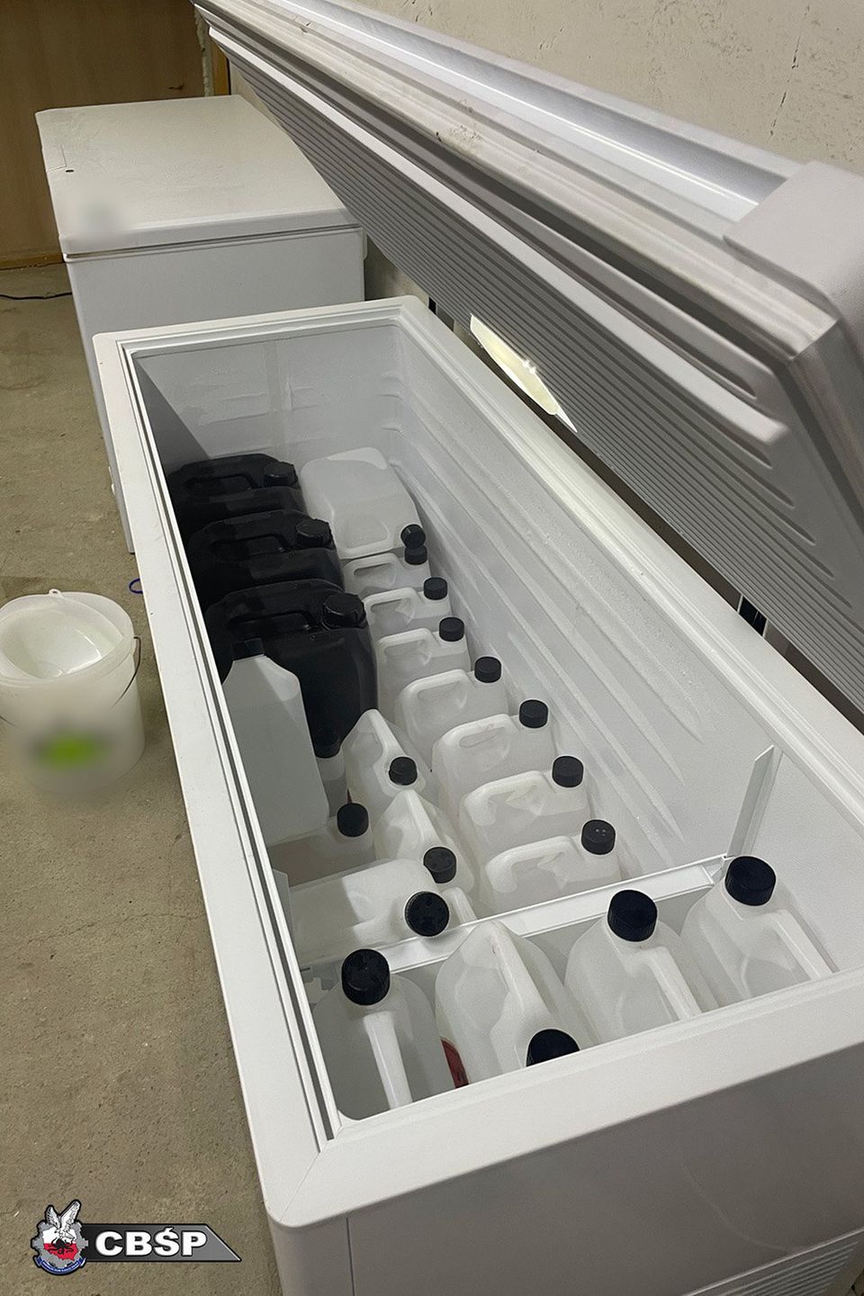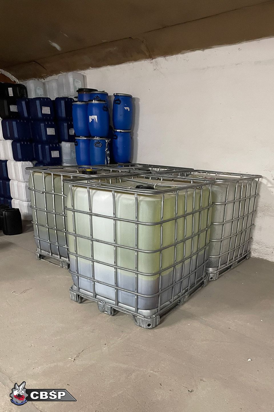 Podczas przeszukania pomieszczeń magazynowych i mieszkalnych policjanci ujawnili specjalistyczną aparaturę oraz kompletną linię technologiczną służącą do produkcji narkotyków. Skala znaleziska była ogromna – zabezpieczono ponad 700 kilogramów klefedronu w postaci płynnej oraz 70 kilogramów w formie skrystalizowanej. Według wstępnych szacunków czarnorynkowa wartość tych substancji wynosi ponad 4 mln zł.