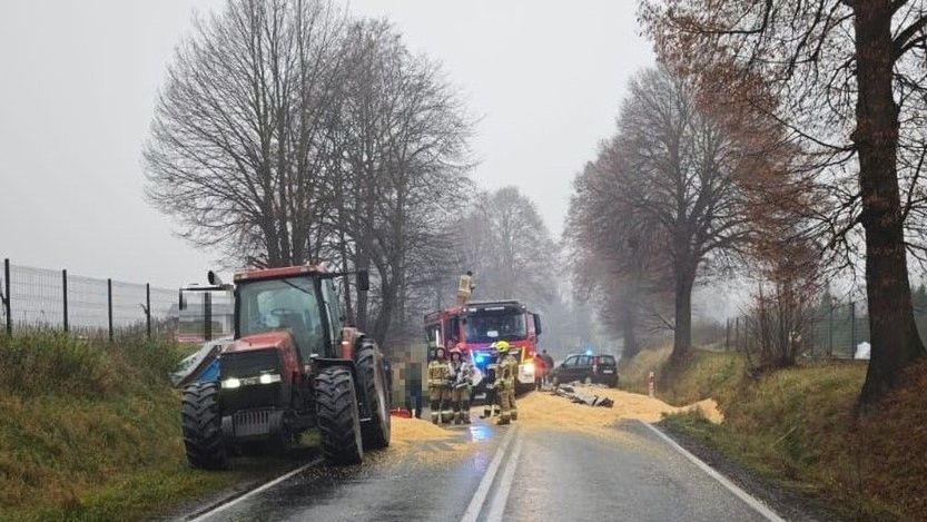 Na ul. Krakowskiej w Przeciszowie, będącej fragmentem drogi krajowej nr 44, od godzin porannych występują poważne utrudnienia w ruchu. Według ustaleń służb, po godzinie 8 z przyczepy ciągnika rolniczego wysypała się znaczna ilość kukurydzy, która całkowicie pokryła jezdnię. Zdarzenie doprowadziło do całkowitego zablokowania trasy, uniemożliwiając przejazd w obu kierunkach.