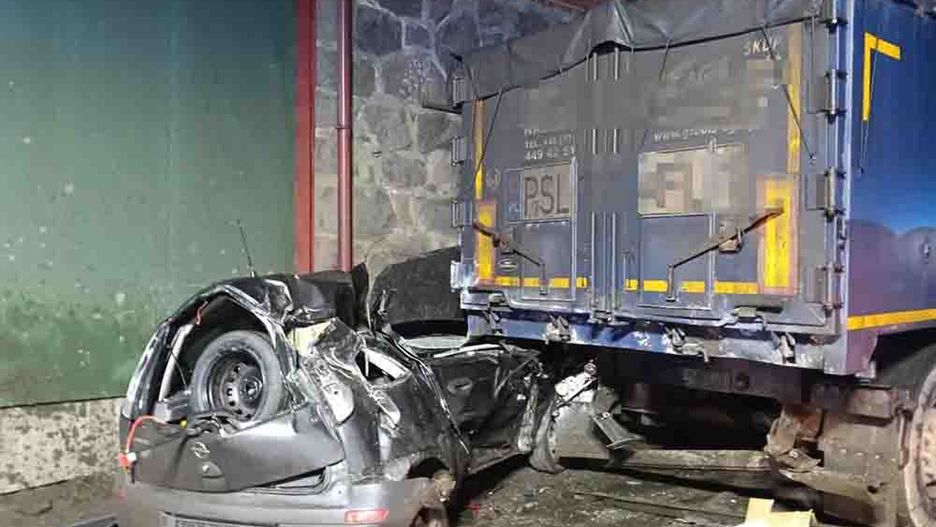We wtorek, 2 grudnia, około godziny 23:00, kierujący Oplem stracił panowanie nad pojazdem na łuku drogi. Wpadł w poślizg i zjechał na pobocze, gdzie uderzył w tył naczepy ciężarówki zaparkowanej na parkingu dla samochodów ciężarowych czekających na wjazd do firmy.