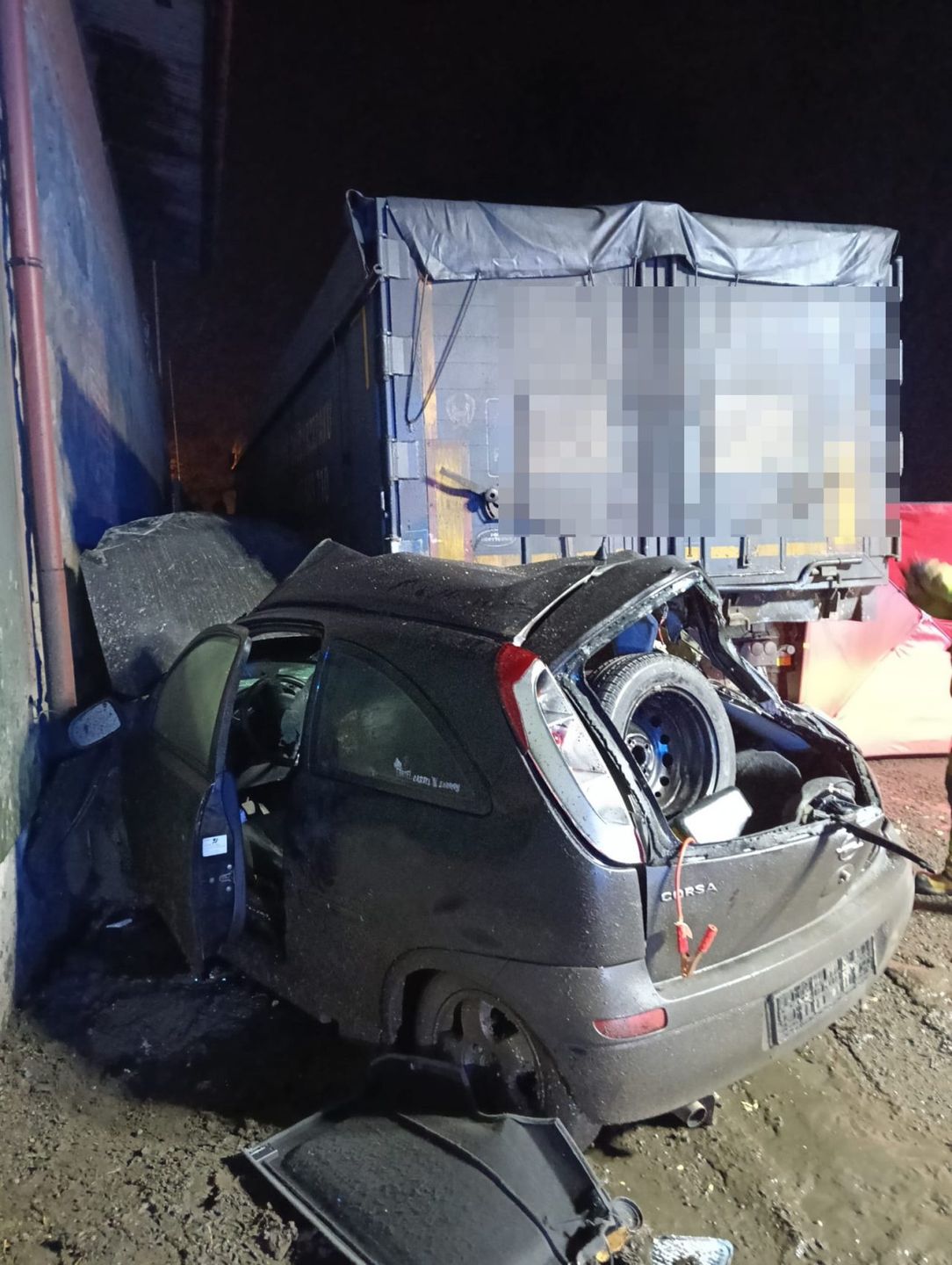 Według przekazanych informacji, samochód osobowy uderzył w tył stojącej ciężarówki z dużą siłą, co doprowadziło do znacznych deformacji karoserii i uniemożliwiło samodzielne wydostanie się kierowcy.