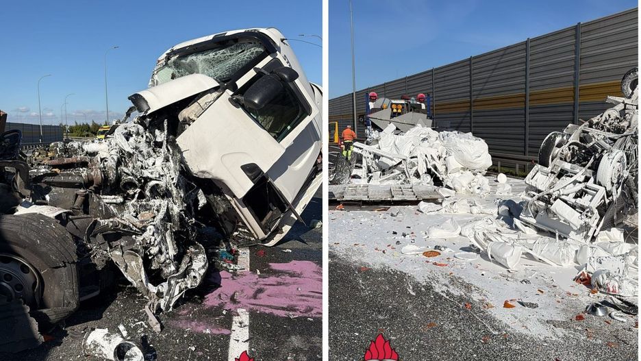 Rogowo: Zderzenie dwóch ciężarówek na A1. Dwie osoby trafiły do szpitala