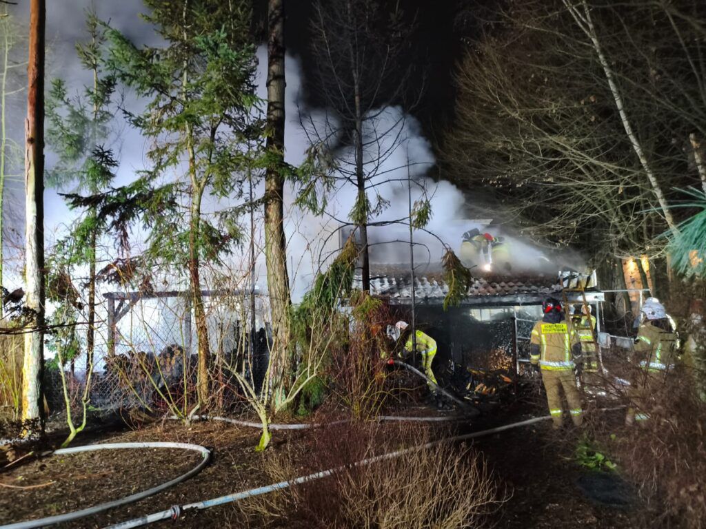 Rybienko Leśne: Pożar wiaty na drewno i budynku gospodarczego. Z ogniem walczyło 9 zastępów straży pożarnej