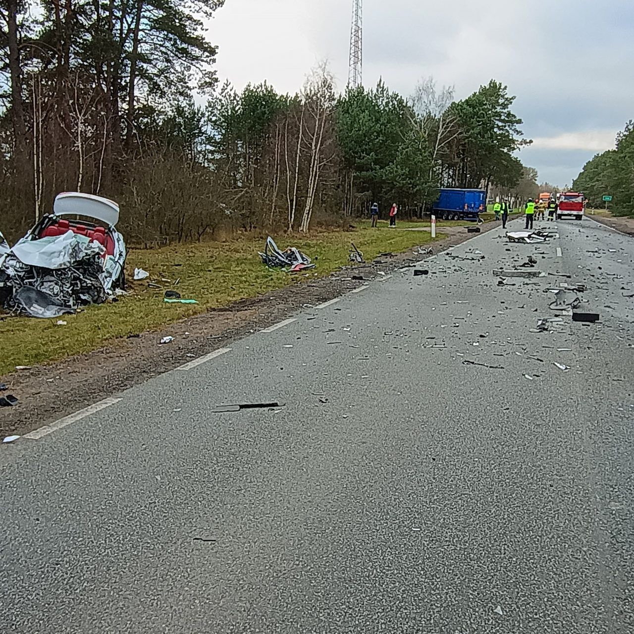 Sielec: Auto osobowe zmiażdżone po zderzeniu z ciężarówką. DK60 zablokowana