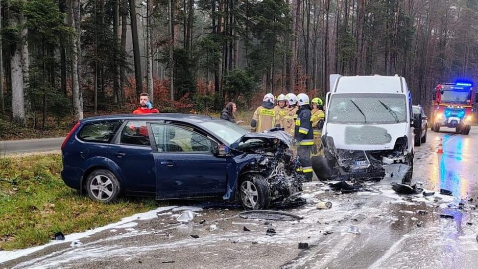 Siodła: Pięć osób rannych po zderzeniu busa z samochodem osobowym