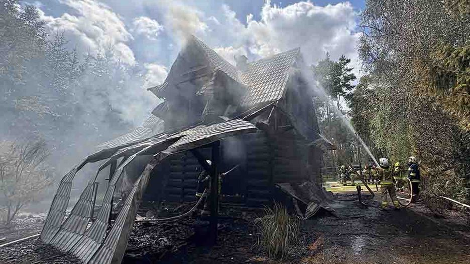 Niestety ogień błyskawiczni rozprzestrzenił się po drewnianej konstrukcji. W dodatku pożar wybuchł w środku domu. – Domek spłonął – mówi st. kpt. Kowalski. Na miejscu jest siedem zastępów straży pożarnej. Trwa dogaszanie drewnianej konstrukcji.
