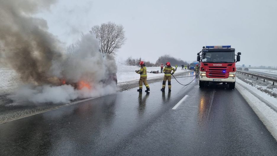 Strzelce Opolskie: Pożar samochodu na A4. Szybka reakcja Żandarmerii Wojskowej zapobiegła większym stratom