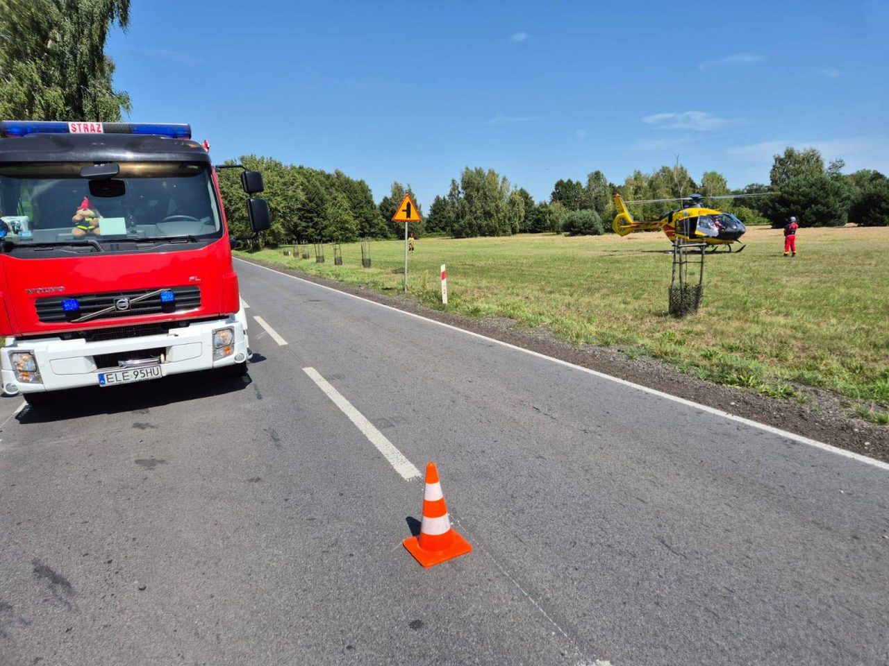 Na miejsce natychmiast skierowano jednostki straży pożarnej. Działania ratowników obejmowały zabezpieczenie lądowiska dla śmigłowca Lotniczego Pogotowia Ratunkowego, wsparcie Zespołu Ratownictwa Medycznego w udzielaniu pierwszej pomocy osobie poszkodowanej, sprawdzenie terenu zdarzenia pod kątem obecności innych osób oraz odłączenie akumulatora w uszkodzonym motocyklu.