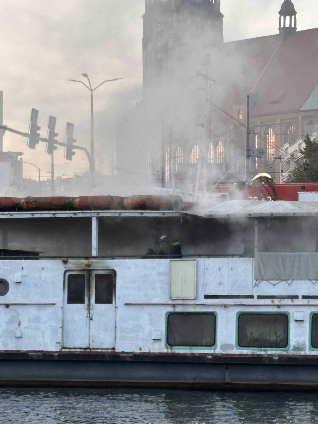 Szczecin: Pożar barki przy nabrzeżu Wieleckim