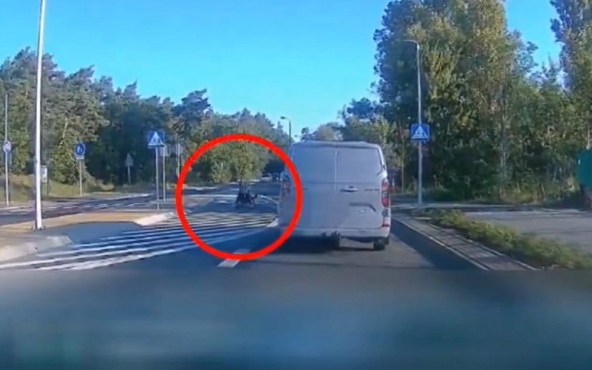 16 września 2025 roku na Szosie Okrężnej w Toruniu miało miejsce zdarzenie, które mogło skończyć się tragedią. Kierowca forda focusa wykonał manewr wyprzedzania w miejscu wyłączonym z ruchu — tuż przed przejściem dla pieszych. W tym samym momencie przez jezdnię przechodził pieszy wraz z psem.