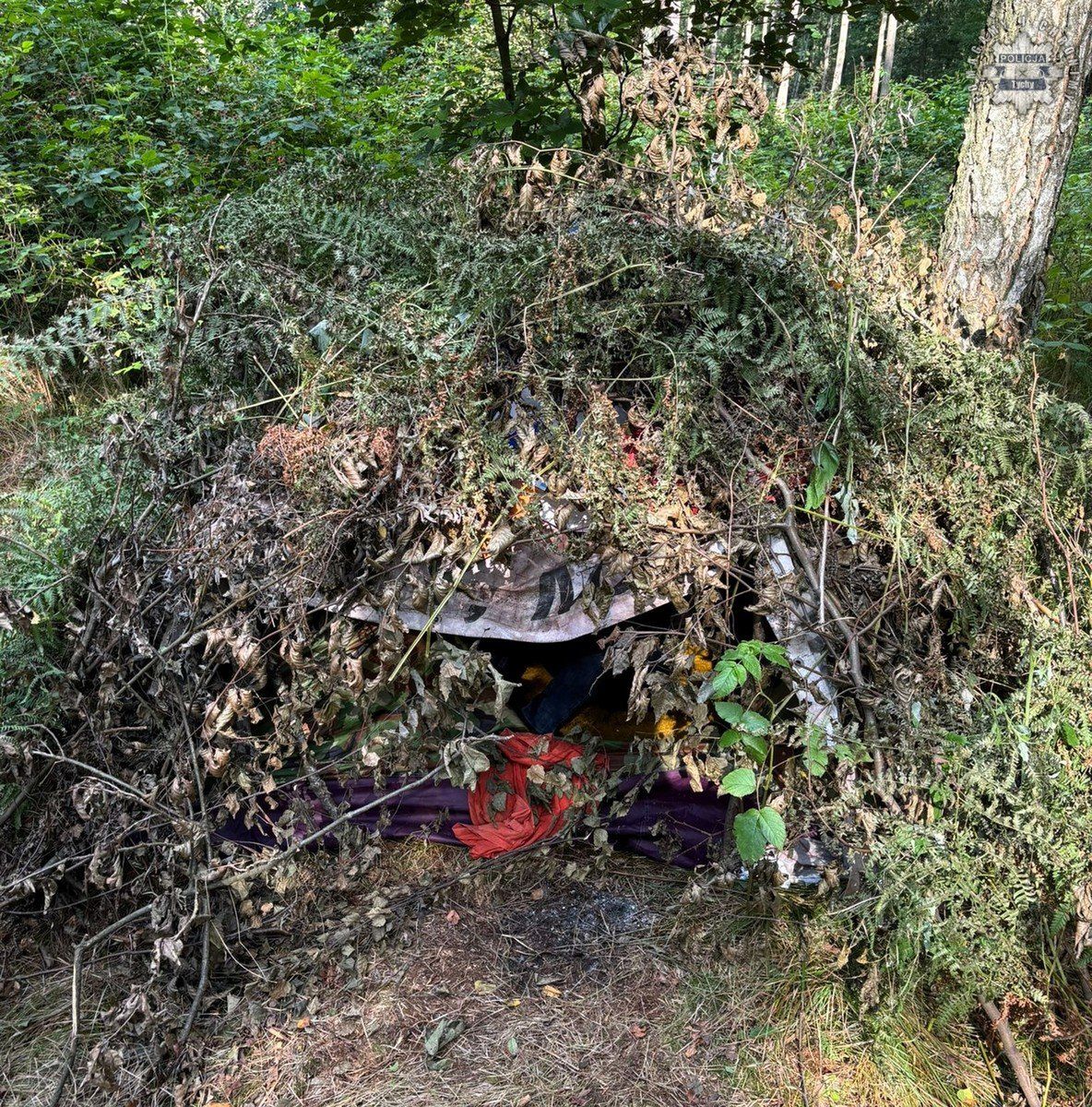 Funkcjonariusze wnikliwie analizowali wszystkie dostępne tropy. Dzięki zebranym informacjom i zaangażowaniu dzielnicowego ustalili, że poszukiwany może prowadzić koczowniczy tryb życia i ukrywać się w lesie, z dala od zabudowań. Ślad doprowadził ich do Lasu Murckowskiego. Po przeszukaniu dużego obszaru leśnego, policjanci odnaleźli i zatrzymali 45-latka, który od miesięcy przebywał w prowizorycznym obozowisku - namiocie starannie zamaskowanym chrustem i paprociami.