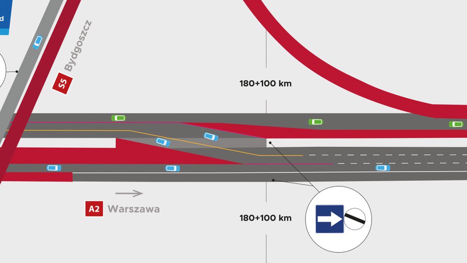 Na tym etapie prac całkowicie zamknięte zostaną łącznice zjazdowe z A2 na trasę S5. Oznacza to, że ani kierowcy jadący z Warszawy, ani podróżujący od strony Świecka nie będą mogli zjechać na drogę w kierunku Bydgoszczy i Gniezna.