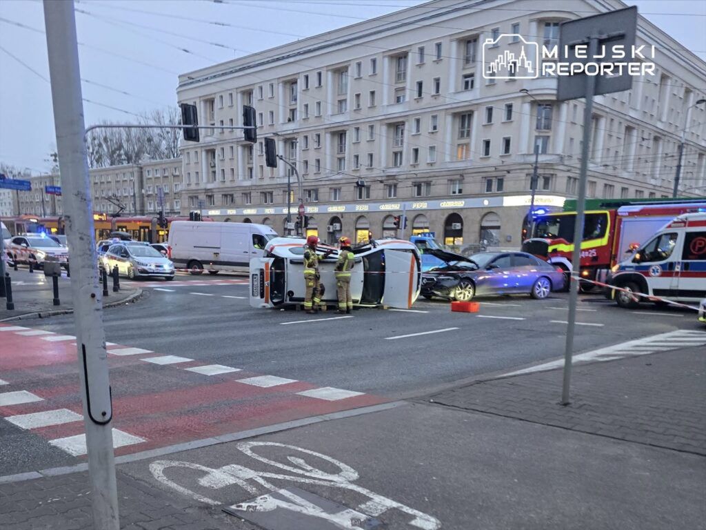 Warszawa: Jechali do wykolejonego tramwaju. Zderzyli się z mercedesem