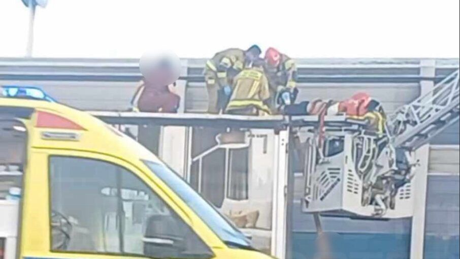 Podczas rozkładania skokochronu mężczyzna niespodziewanie przemieścił się na przeciwległy pas ruchu i skoczył na naczepę jadącej ciężarówki. Kierowca natychmiast się zatrzymał, a strażacy udzielili poszkodowanemu pierwszej pomocy. Przy pomocy drabiny mechanicznej poszkodowany został bezpiecznie ewakuowany na ziemię i przekazany ratownikom medycznym. Mężczyzna trafił do szpitala.
