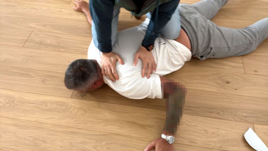 Po wejściu do mieszkania na Pradze Południe, polscy kryminalni zatrzymali dwóch mężczyzn pochodzenia romskiego w wieku 49 i 24 lat. Podejrzani zaprzeczali związkom ze sprawą, jednak w trakcie przeszukania znaleziono dowody obciążające: telefon, z którego wykonano połączenie do poszkodowanej, niemiecką książkę telefoniczną, laptopy, telefony komórkowe, biżuterię oraz markowe zegarki o wartości ponad 400 tysięcy złotych. Funkcjonariusze zabezpieczyli również narkotyki — marihuanę i kokainę.