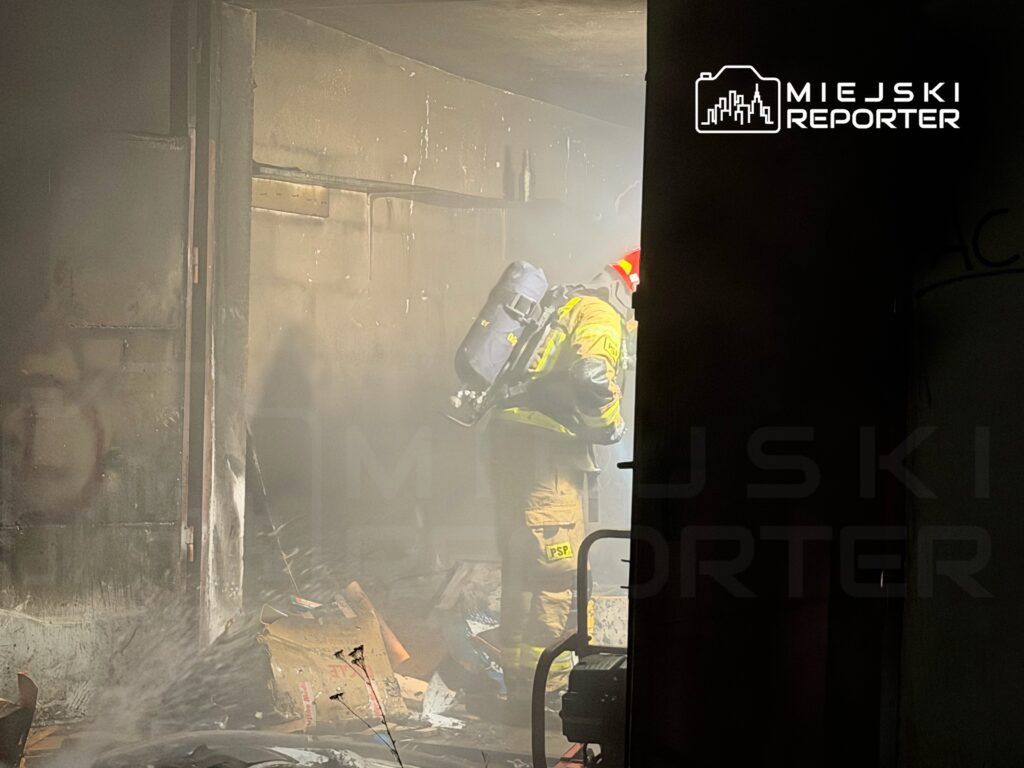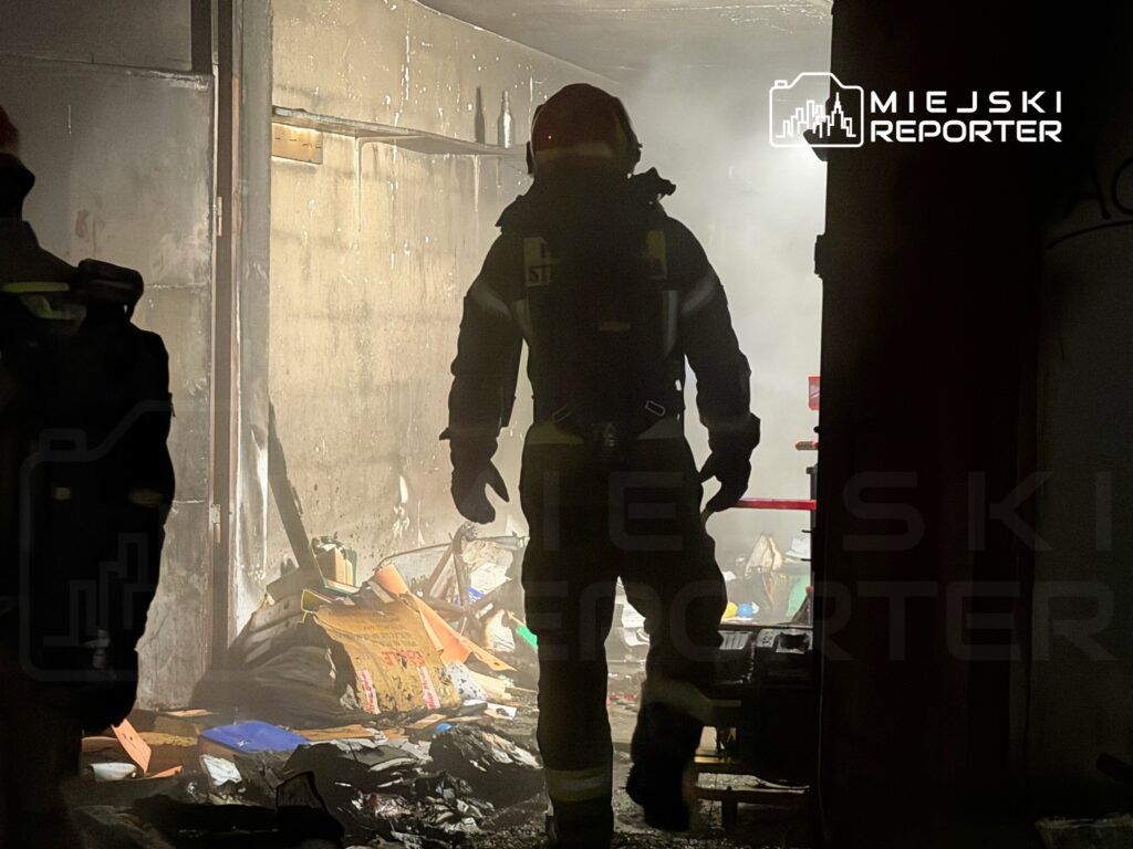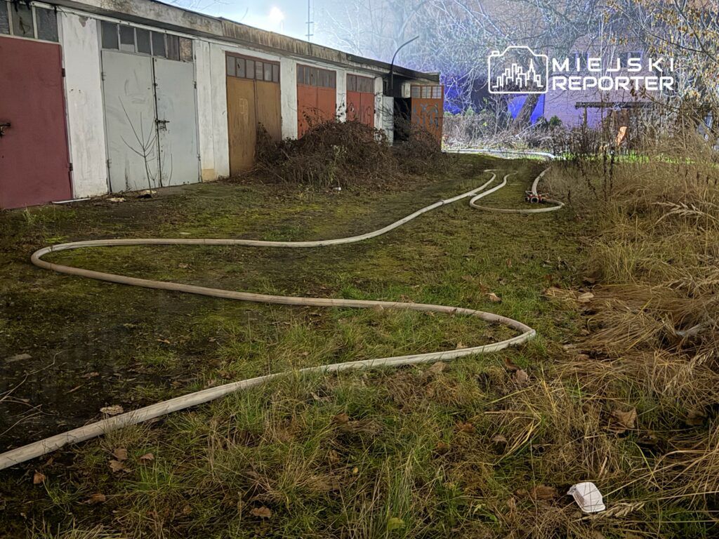Po przybyciu służb ogniem objęty był jeden boks garażowy. Wewnątrz znajdowały się różne składowane przedmioty, które stanowiły materiał palny. Strażacy szybko opanowali pożar, uniemożliwiając rozprzestrzenienie się ognia na sąsiednie boksy.