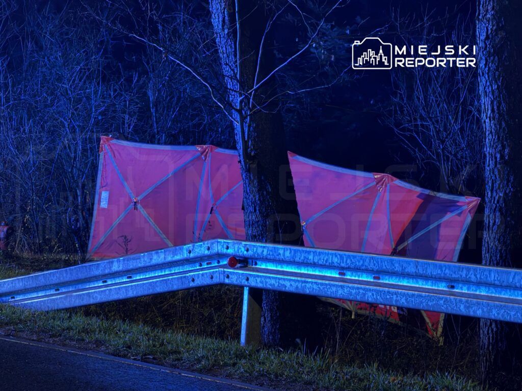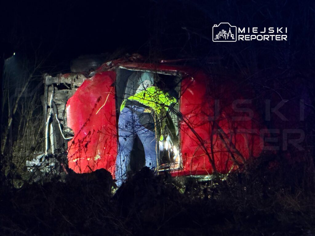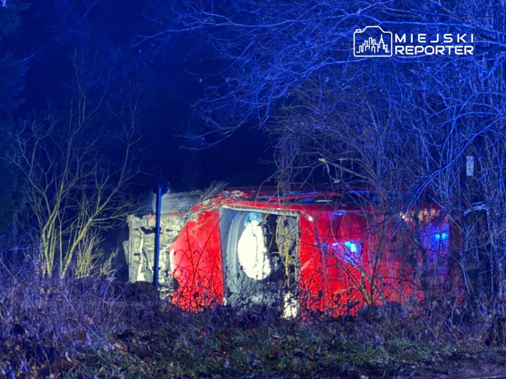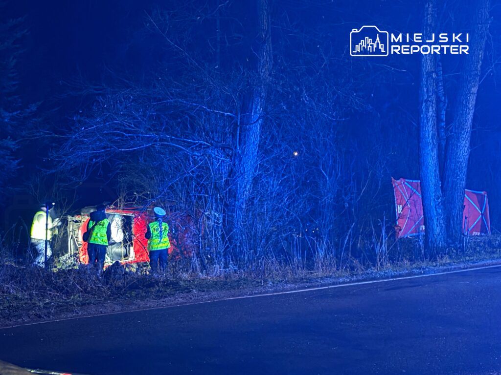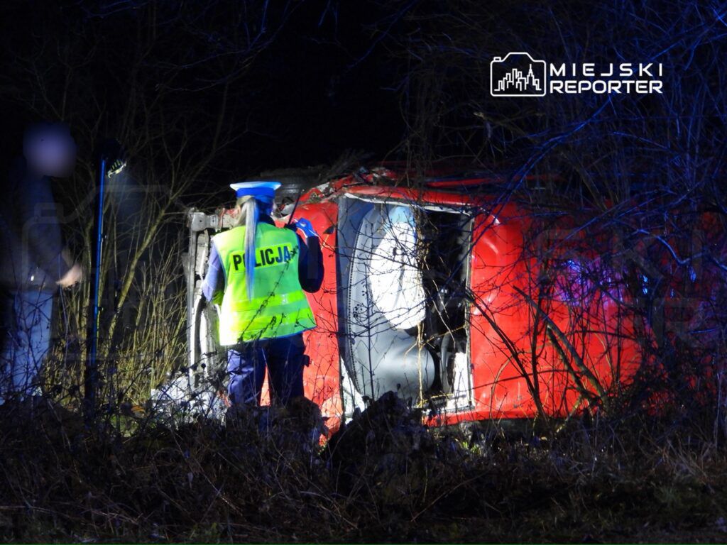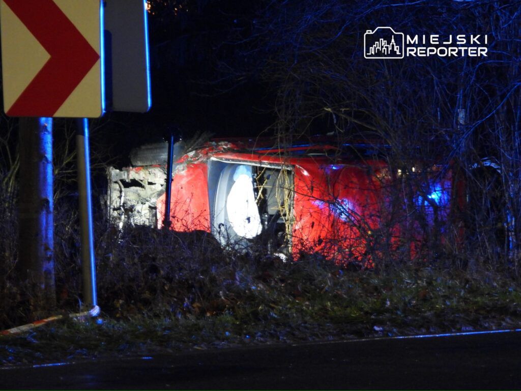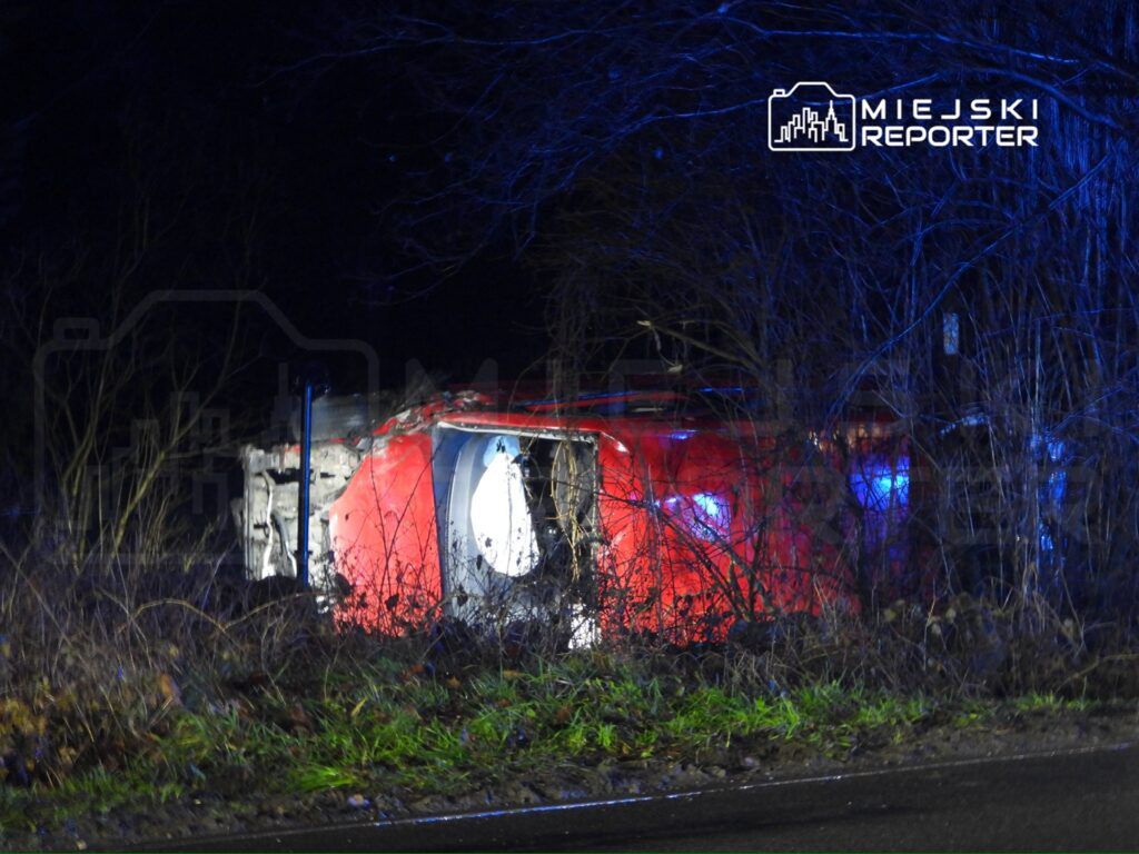 Ze wstępnych ustaleń wynika, że 41-latek kierujący samochodem marki Volkswagen, jadąc łukiem drogi, z nieustalonych na tę chwilę przyczyn stracił panowanie nad pojazdem. Auto wypadło z jezdni, uderzyło w przydrożną skrzynkę elektryczną, a następnie dachowało do rowu, zatrzymując się na boku.