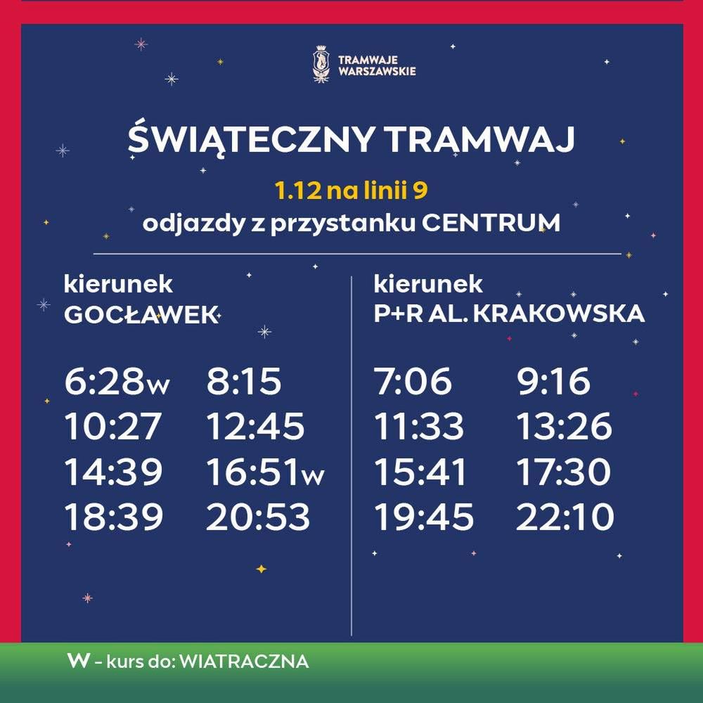 “Jutro rusza nasz świąteczny tramwaj! Już od poniedziałku na ulice Warszawy wyjedzie wyjątkowy, świątecznie udekorowany tramwaj. Pełen świateł, ozdób i zimowej atmosfery – będzie kursował na wybranych liniach, żeby wprowadzić Was w wyjątkowy klimat nadchodzących świąt.