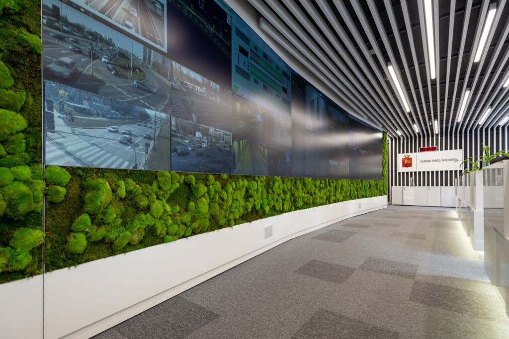 - system monitoringu wizyjnego – 240 rejestrujące kamery obrotowe na skrzyżowaniach, które na bieżąco pokazują sytuację na ulicach;