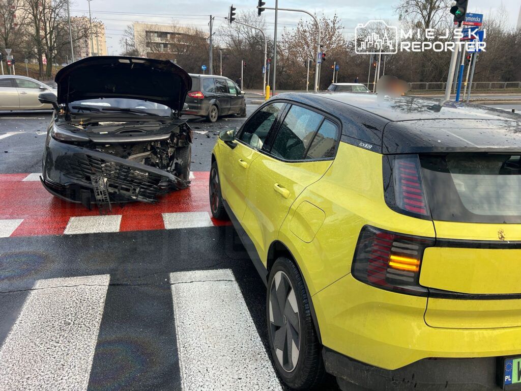 Ze wstępnych ustaleń wynika, że na skrzyżowaniu doszło do zderzenia osobowego forda z pojazdem marki Baic Beijing. Siła uderzenia była na tyle duża, że Baic Beijing przemieścił się i uderzył w stojące na światłach elektryczne volvo. Wszystkie pojazdy brały udział w zdarzeniu na skrzyżowaniu, na którym odbywa się wzmożony ruch samochodowy.