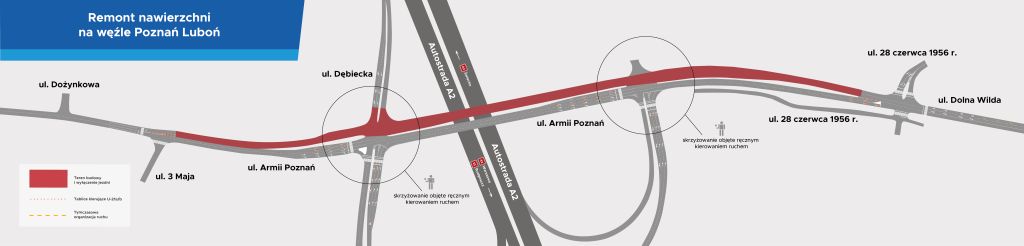 Z chwilą udostępnienia łącznic rozpocznie się drugi etap inwestycji – remont nawierzchni zachodniej jezdni drogi wojewódzkiej nr 430 z Poznania do Lubonia. Ruch zostanie wówczas przekierowany na jezdnię wschodnią. Zamknięty będzie wjazd i wyjazd z ul. Dębieckiej, a objazdy poprowadzą przez ulice Lubonia. Dojazd do posesji przy ul. Armii Poznań 2–2H zostanie zachowany.