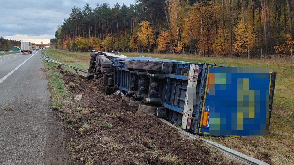 Wilczanka: Ciężarówka przewróciła się na S17. Kierowca zasnął