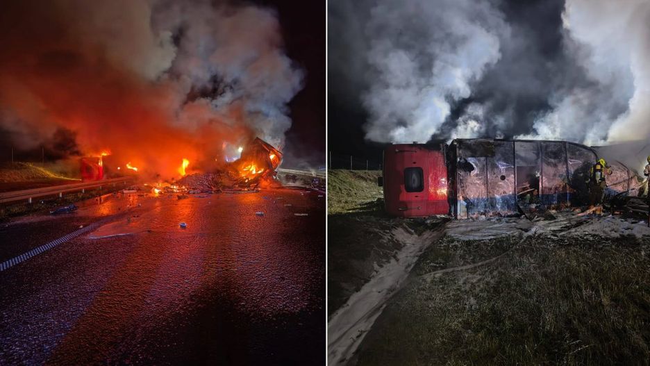Tuż po godzinie 2, na pasie w kierunku Gdańska, między węzłami Swarożyn i Stanisławie, zderzyły się dwa samochody ciężarowe. W wyniku czego oba pojazdy stanęły w płomieniach.
