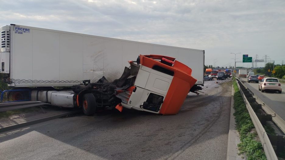– W wyniku wypadku pojazd ciężarowy stanął w poprzek drogi opierając się o barierki – przekazała Komenda Miejska PSP w Gdańsku.