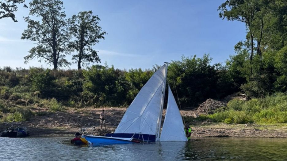 Akcja służb na dolnośląskim zalewie w okolicy Jawora. Żaglówka przewróciła się do wody. Na jej pokładzie były trzy osoby.