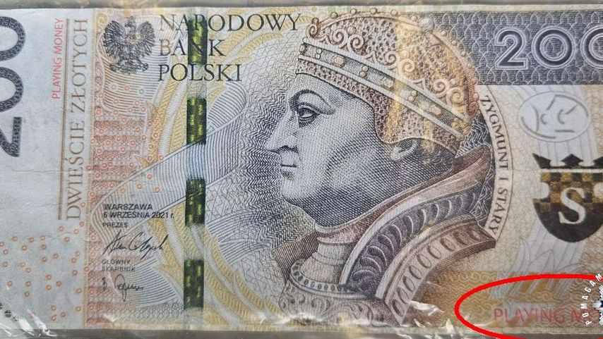 W minioną sobotę ostrowieccy policjanci otrzymali informację o ujawnieniu fałszywego banknotu. Do zdarzenia doszło na terenie jednej ze stacji paliw położonej w gminie Waśniów. Z relacji zgłaszającej wynikało, że jeden z klientów za zrobione zakupy o wartości blisko 65 złotych zapłacił banknotem o nominale 200 złotych. Początkowo wygląd banknotu nie wzbudził podejrzenia kasjerki. Dopiero po chwili kiedy kobieta dokładnie mu się przyjrzała stwierdziła, że ma do czynienia z fałszywym pieniądzem, który posiadał napis "PLAYING MONEY". Natychmiast o całej sytuacji powiadomiła policjantów. Sprawą zajęli się funkcjonariusze z Komisariatu Policji w Kunowie.