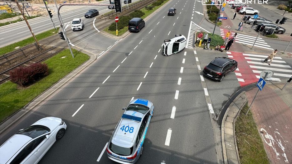 Mokotów, 10 czerwca 2025 r., godz. 11:40 — Na ruchliwym skrzyżowaniu ulic Wołoskiej i Uniechowskiego doszło przedpołudniem do kolizji drogowej z udziałem Mercedesa i Volkswagena. Według ustaleń, kierująca Mercedesem jechała prosto ul. Wołoską w kierunku Domaniewskiej i na czerwonym świetle wjechała na skrzyżowanie, gdzie uderzyła w nadjeżdżającego z naprzeciwka VW, którego kierująca skręcała na zielonym świetle w lewo. Siła uderzenia przewróciła pojazd marki Volkswagen na bok.